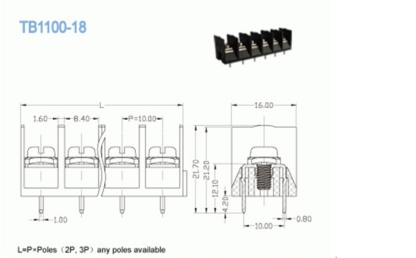 Pitch 10.00mm 600V 30A 2P or 3P Barrier Terminal block power terminal block